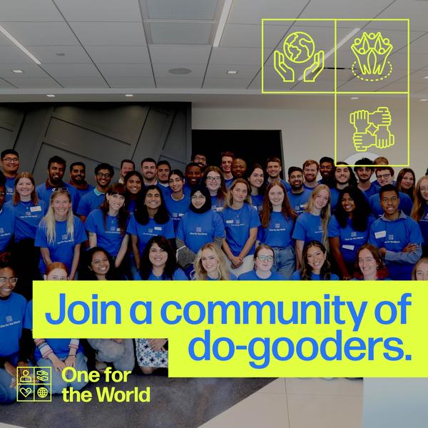 One for the World's mission is to build a movement of people revolutionizing charitable giving to end extreme global poverty through education, training, and community building. Founded at Wharton in 2014, the organization encourages students and young professionals to pledge at least 1% of their income to effective charities through their convenient online platform. With over 700 members across the US, Canada, Australia and the UK, and over 80 university chapters including Wharton MBA, Penn Law, Penn Undergrad, Harvard Business School, Cambridge, St Andrews and the University of Melbourne, One for the World serves as a low-barrier entry point to effective giving. The organization has received significant funding from Effective Altruism Funds and Open Philanthropy, reflecting its credibility within the effective altruism movement as a bridge between newcomers and more established giving commitments.
